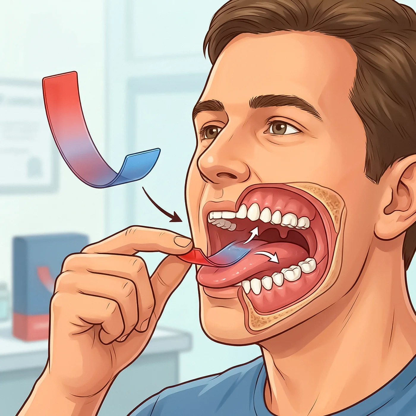 You place it on your tongue and it dissolves in seconds. The active compound absorbs directly through the buccal mucosa, a thin membrane lining your mouth packed with capillaries.